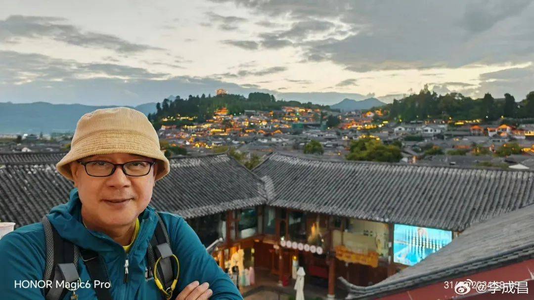 和很多普通人一样,作为游客,李成昌拍照时也难免用到剪刀手,看起来也是非常接地气,不管最终拍出来的效果如何,只要将美景记录下来,想必李成昌就很满足了。